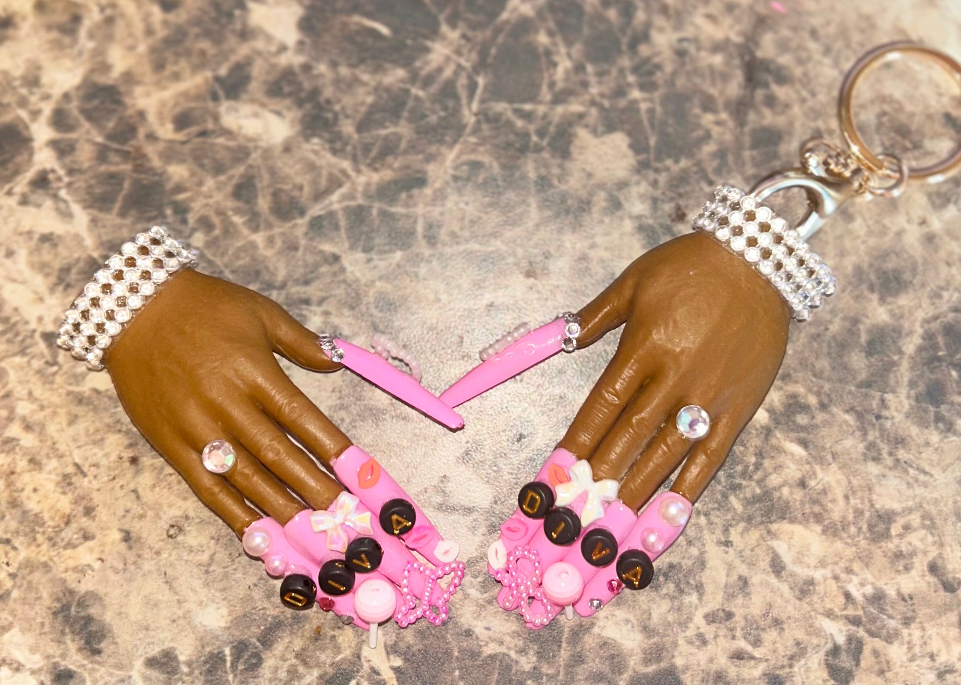 Dripping in pink, pearls, rhinestones & DIVA energy – this handmade masterpiece isn’t for the shy.